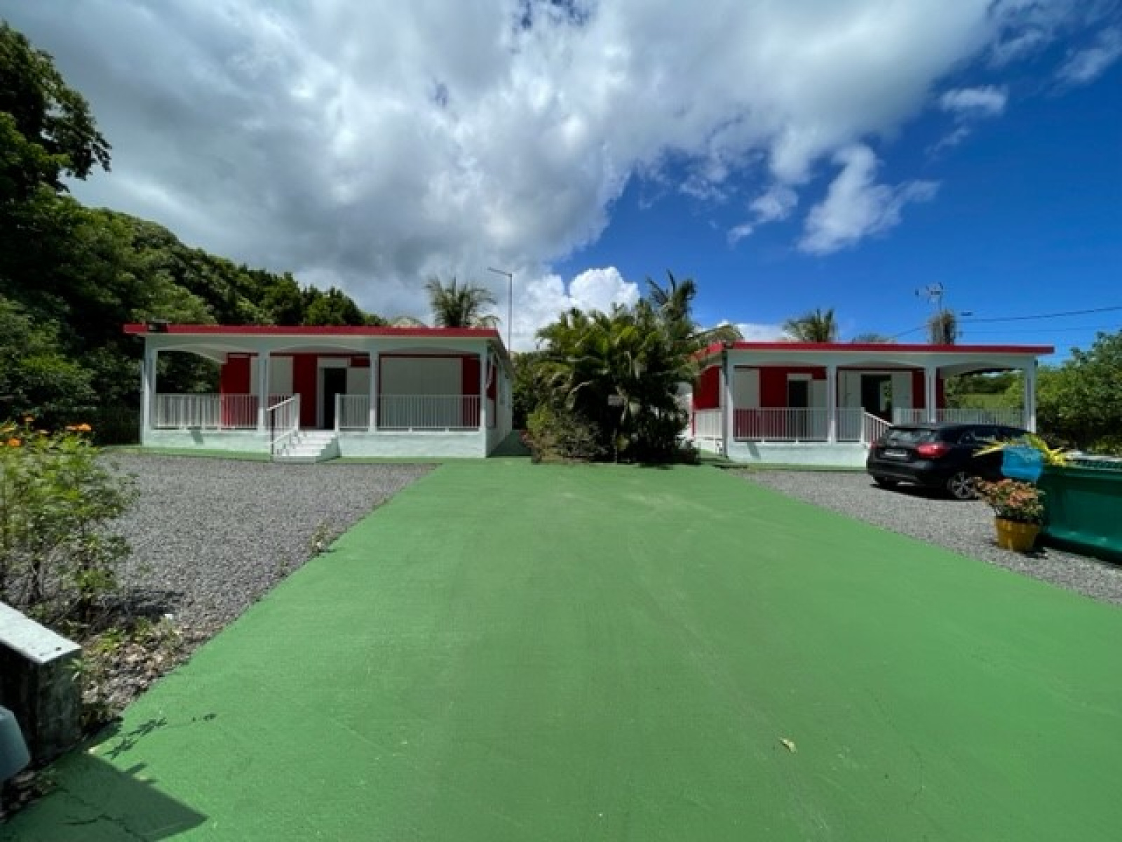 CHAQUE VILLA COMPREND UNE BELLE TERRASSE AVANT - UN SEJOUR - CUISINE OUVERTE - BUANDERIE - DEUX CHAMBRES - DEUX SALLES D 'EAU WC - UN DEGAGEMENT - CITERNE D'EAU - JARDIN ARBORE ET FLEURI - CLOS - LA PROPRIETE EST SITUEE A LA SORTIE DU MOULE COTE MORNE A L'EAU - LOYER MENSUEL PAR VILLA 1100 € - DEPOT DE GARANTIE PAR VILLA 1100 €